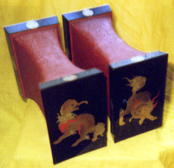 黒漆塗葵紋付蒔絵こより枕(南天蒔絵・獏蒔絵)