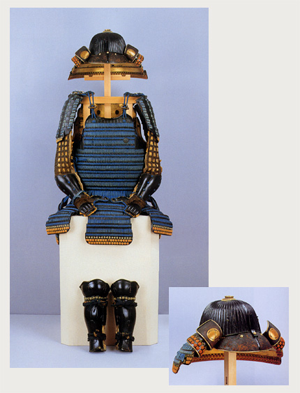 紺糸威二枚胴具足 兜「黒漆塗六十二間筋兜」