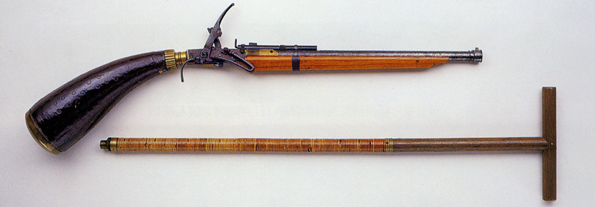 気砲(空気入、気砲巻物、木製銃掛付箱入)