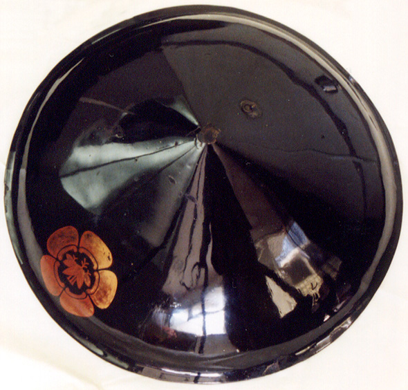 黒漆塗円錐形陣笠(瓜に三本足根笹紋)
