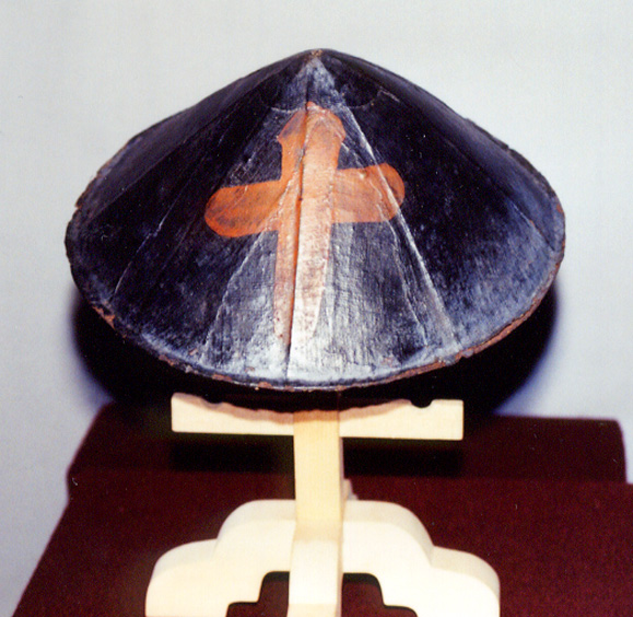 黒漆塗鉄九枚張円錐形陣笠(十字紋)