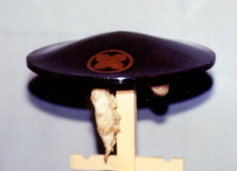 黒漆塗一文字形陣笠(丸に違鷹紋)