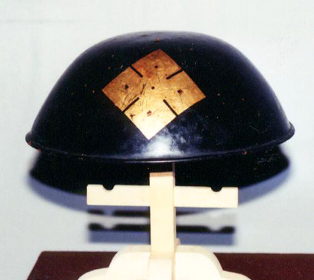 鉄地黒漆塗丸型陣笠(五つ目紋)