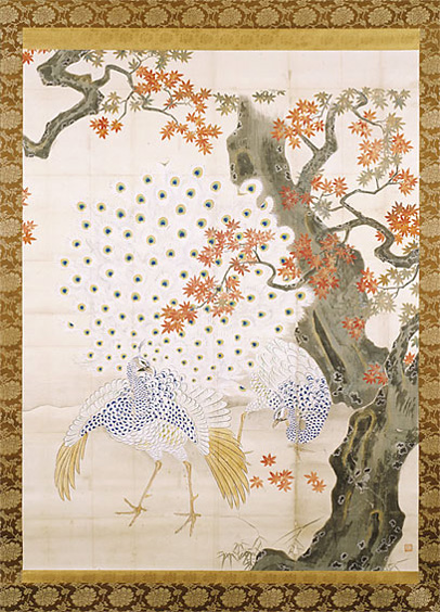 白孔雀に楓図(本丸御殿孔雀の間壁貼付絵写)