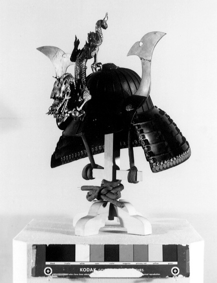 龍前立付鉄錆地二十四間筋兜(鍬形あり)