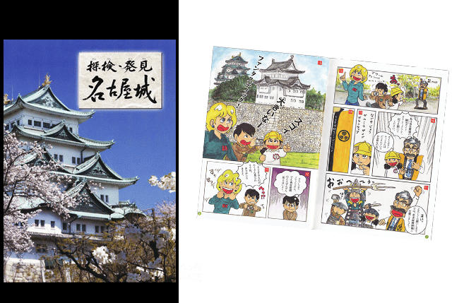 小学校高学年を対象として、名古屋城の大 きさや歴史、櫓や門、本丸御殿、天守、金 鯱等々を紹介しています。 イラストや漫画、写真を多用し、楽しく学 んでいただけるよう工夫しています。